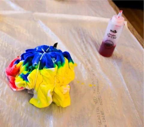 It’s also a good idea to use gloves when working with tie-dye. Dye is right there in the name, so if you don’t use gloves expect some colorful fingers for a day or two.